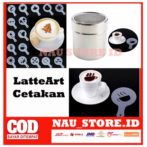 Distributor Perlengkapan di Kabupaten Tabalong Latte Art / Cetakan Busa Foam Kopi Latte Art 16 Pcs / Cetakan Latte Art + Alat Penabur dari Nau Store Id Kota Surabaya