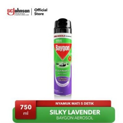 Baygon ® anti nyamuk, lalat, dan kecoa diformulasikan untuk membunuh nyamuk Aedes aegypti, Culex quinquefasciatus, lalat Musca domestica, kecoa Blatella germanica, Periplanneta americana, dan semut Anoplolepis gracilipes di dalam ruangan. Keunggulan: Teknologi double nozzle, daya sebar semprotan lebih luas, Perlindungan dari nyamuk selama 10 jam, Aroma lembut Silky Lavender, Membunuh cepat serangga bahkan nyamuk yang bersembunyi, gramasi sudah diperhitungkan sesuai dengan kemasan yang digunakan untuk menjaga produk tetap