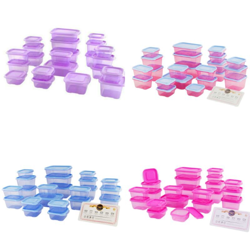 Dijual 1 set toples serba guna isi 22 pcs. Keunggulan produk :Wadah multifungsiBisa untuk menyimpan berbagai jenis bahan masakan, snack, sayuran/buah, hingga accesoriesIsi komplitGa perlu khawatir storagenya kurang karena 1 set Bambang isinya Komplit, ada 22 pcs wadah dengan berbeda ukuranMaterial PP5, BPA Free, dan food gradeTidak perlu khawatir, dengan material yang berkualitas Bambang aman untuk segala jenis makananFreezer safeAman dimasukkan ke dalam freezer. Mau mendinginkan makanan? langsung masukkan bambang ke dalem freezer aja, mudah banget!Microwave safeAman dimasukkan ke dalam microwave. Mau menghangatkan makanan? Langsung masukkan Bambang aja!Stackable Mudah ditumpuk saat tidak digunakan, hemat ruang penyimpananWarna ungu yang super fresh, eye catchy, dan manis banget!Bikin tampilan dapur makin cantik & seragam1 set terdiri dari: 2 pcs kapasitas 1.400 ml2 pcs kapasitas 1.000 ml3 pcs kapasitas850 ml3 pcs kapasitas 700 ml5 pcs kapasitas 450 ml7 pcs kapasitas 270