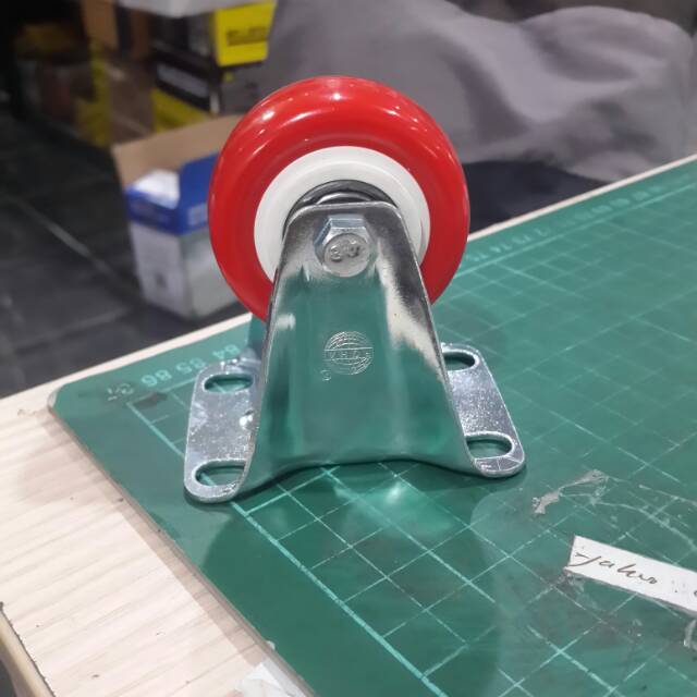 Roda Poliurethane Heavy duty* Merk : Roha * Diameter Roda : 1.5 / 40 mm* Lebar Toda : 40 mm* Jarak Lubang Baut : 30 X45 mm* Tinggi Keseluruhan ( Termasuk Plat ) : 58 mm* Jening bearing : Double Ball Bearing Heavy Duty * Kapasitas Beban Aman : 50 KgMADE IN TA