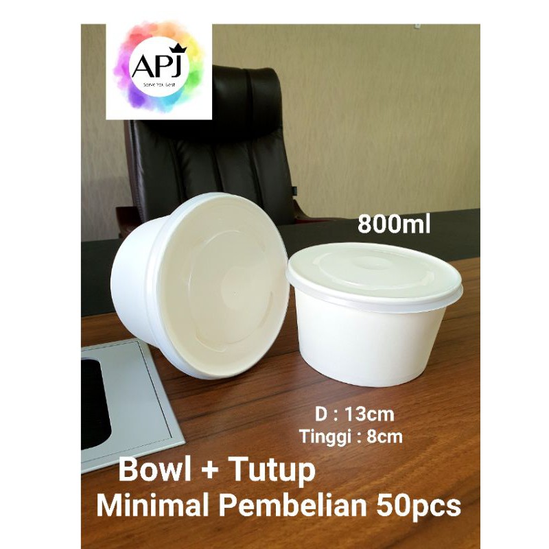 Name: Paper Bowl 800ml + Tutup Putih / Mangkok Kertas 800ml Food Grade